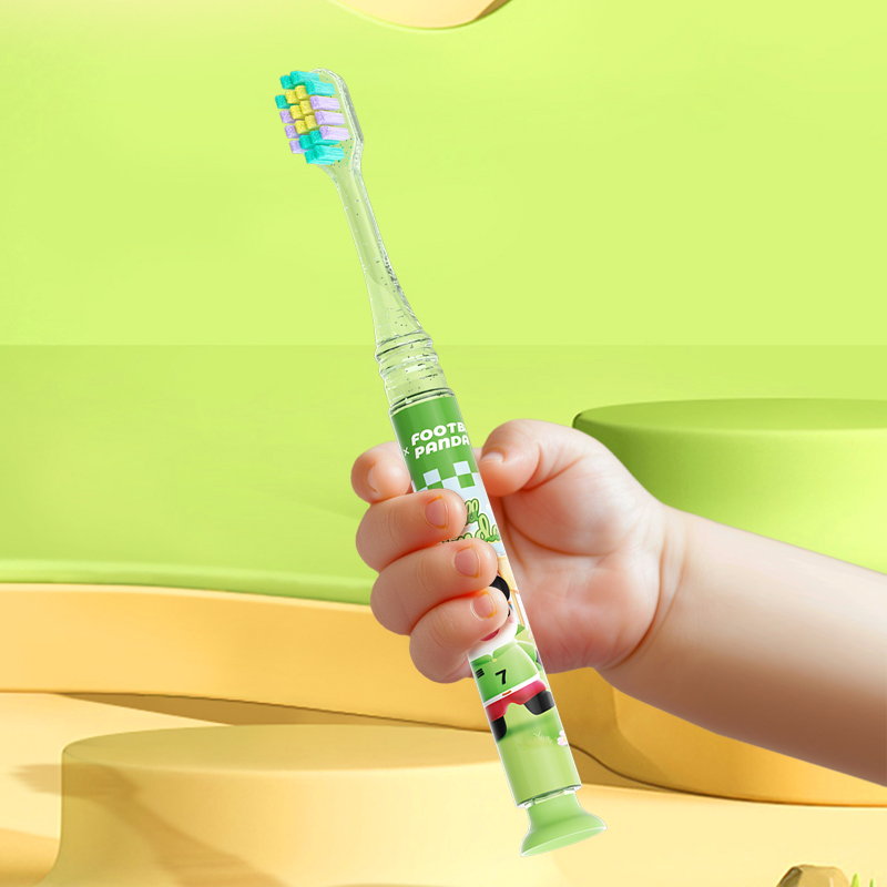 Additionally, the toothbrush features a suction cup at the bottom, allowing it to stand upright on any flat surface. This design keeps the brush clean and easy for your child to reach. It also adds a playful element, letting kids display their favorite toothbrush as part of their daily routine.