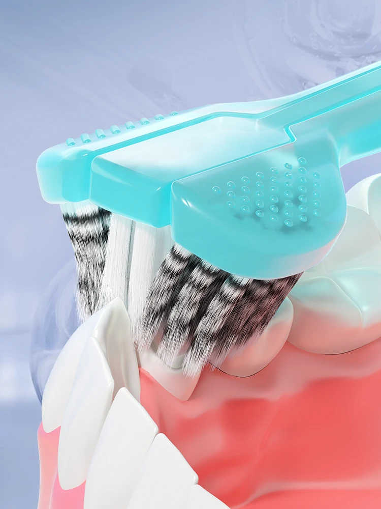 Engineered for a deeper, more efficient clean, the SKYA 3-Sided Toothbrush is designed to brush all tooth surfaces at once — front, back, and chewing edges. Its innovative triple-brush head adapts to your teeth for thorough coverage, while the ergonomic handle ensures comfort and control. Perfect for adults seeking an effortless way to achieve a healthier, fresher smile every day.