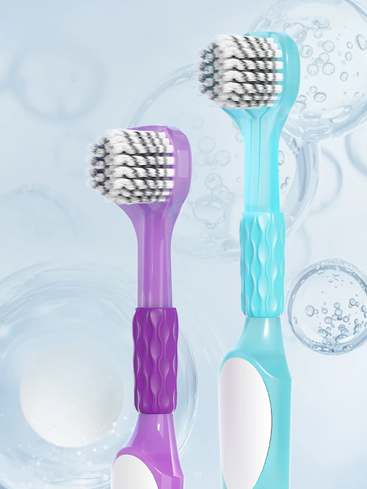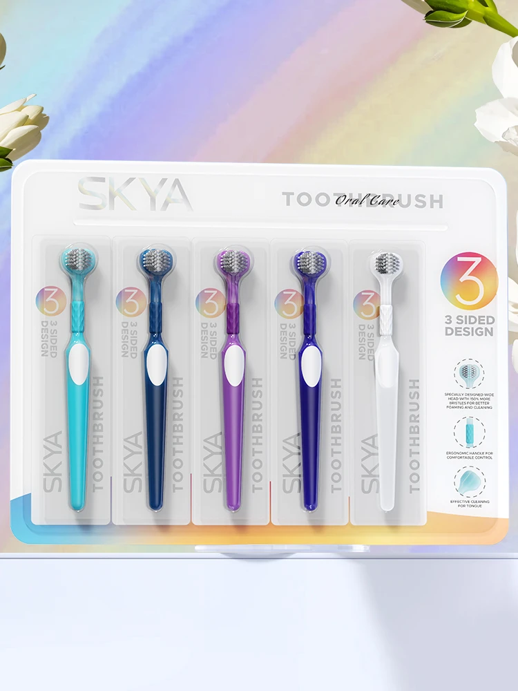 Engineered for a deeper, more efficient clean, the SKYA 3-Sided Toothbrush is designed to brush all tooth surfaces at once — front, back, and chewing edges. Its innovative triple-brush head adapts to your teeth for thorough coverage, while the ergonomic handle ensures comfort and control. Perfect for adults seeking an effortless way to achieve a healthier, fresher smile every day.